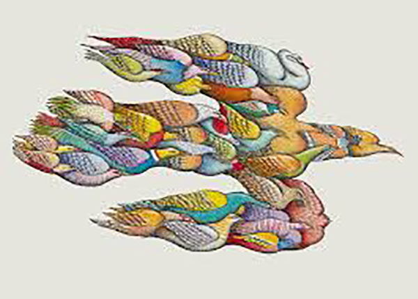 Het verhaal van de Simoerg komt uit de soefi-poëzie, de mystieke tak van de spirituele traditie van de islam, en is een metafoor voor een spirituele reis vanuit het verlangen naar zin. Het veertje staat hierbij symbool voor wat je raakt en uitnodigt en jou appelleert met de vragen: